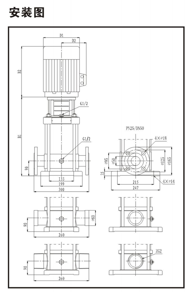 选型参数表 水泵结构 安装形式示意图 产品配件