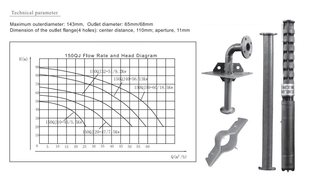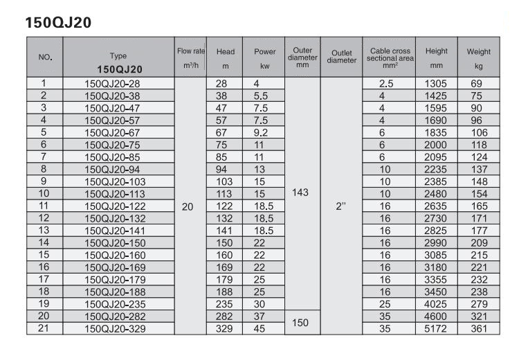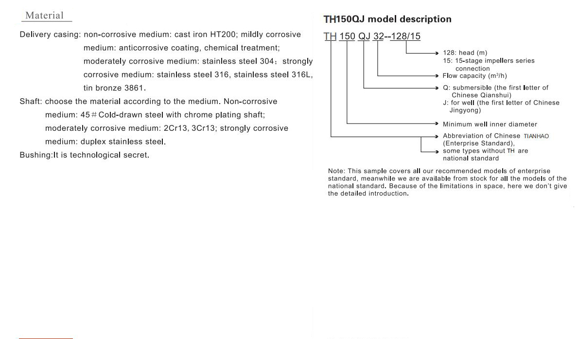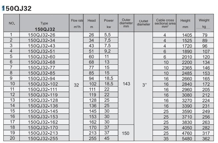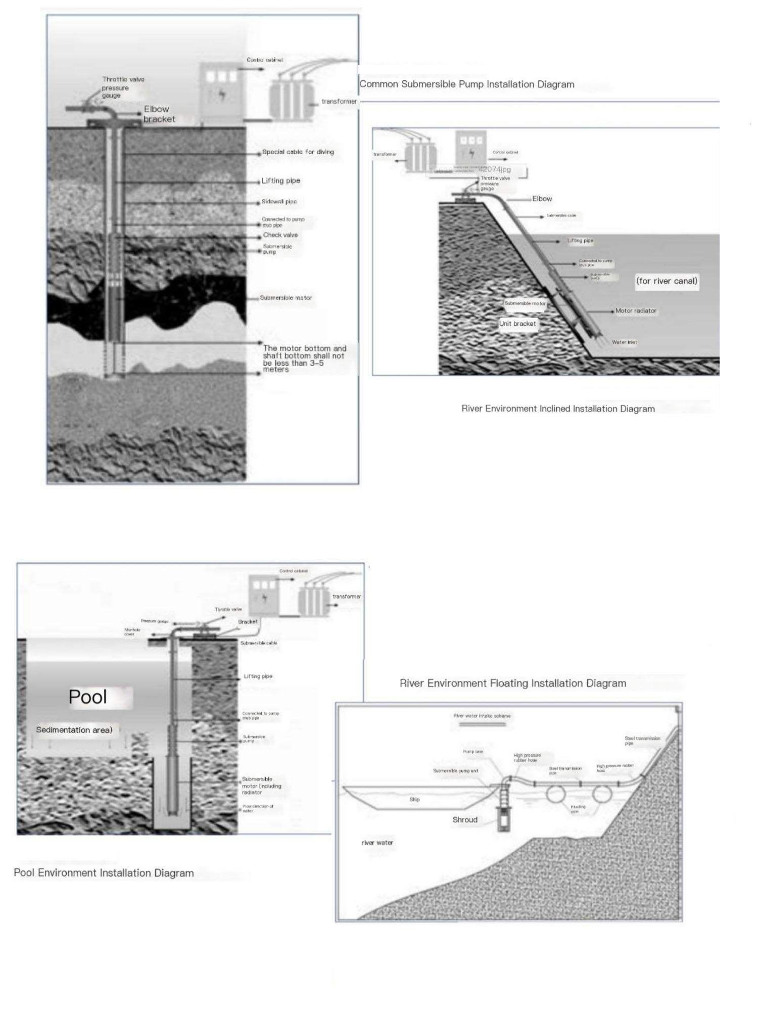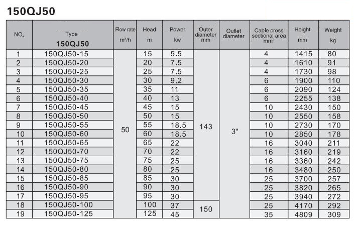 Deep well submersible pump is a kind of water lifting machine with motor and water pump integrated into the water to work. It has the advantages of simple structure, high unit efficiency, low noise, safe and reliable operation, and convenient installation and maintenance. It is suitable for extracting water from deep wells, hot water wells and oceans, as well as rivers, reservoirs, canals, etc. It is mainly used for farmland irrigation and human and animal water in plateau mountains, and also for water supply and drainage in cities, industrial and Guangzhou railways, mines, and construction sites. The utility model has the advantages of simple structure, high unit efficiency, low noise, safe and reliable operation, and convenient installation and maintenance. It is suitable for extracting water from deep wells, hot water wells and oceans, as well as rivers, reservoirs, canals, etc. It is mainly used for farmland irrigation and human and animal water in plateau mountains, and also for water supply and drainage in urban industrial and commercial areas, railways, mines, and construction sites. Model of deep well submersible pump: