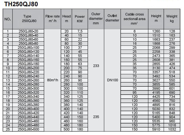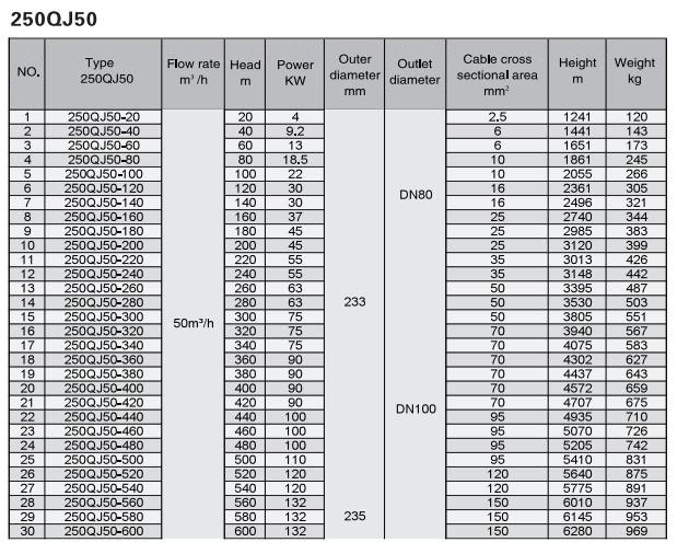 Deep well submersible pump is a kind of water lifting machine with motor and water pump integrated into the water to work. It has the advantages of simple structure, high unit efficiency, low noise, safe and reliable operation, and convenient installation and maintenance. It is suitable for extracting water from deep wells, hot water wells and oceans, as well as rivers, reservoirs, canals, etc. It is mainly used for farmland irrigation and human and animal water in plateau mountains, and also for water supply and drainage in cities, industrial and Guangzhou railways, mines, and construction sites. The utility model has the advantages of simple structure, high unit efficiency, low noise, safe and reliable operation, and convenient installation and maintenance. It is suitable for extracting water from deep wells, hot water wells and oceans, as well as rivers, reservoirs, canals, etc. It is mainly used for farmland irrigation and human and animal water in plateau mountains, and also for water supply and drainage in urban industrial and commercial areas, railways, mines, and construction sites. Model of deep well submersible pump: