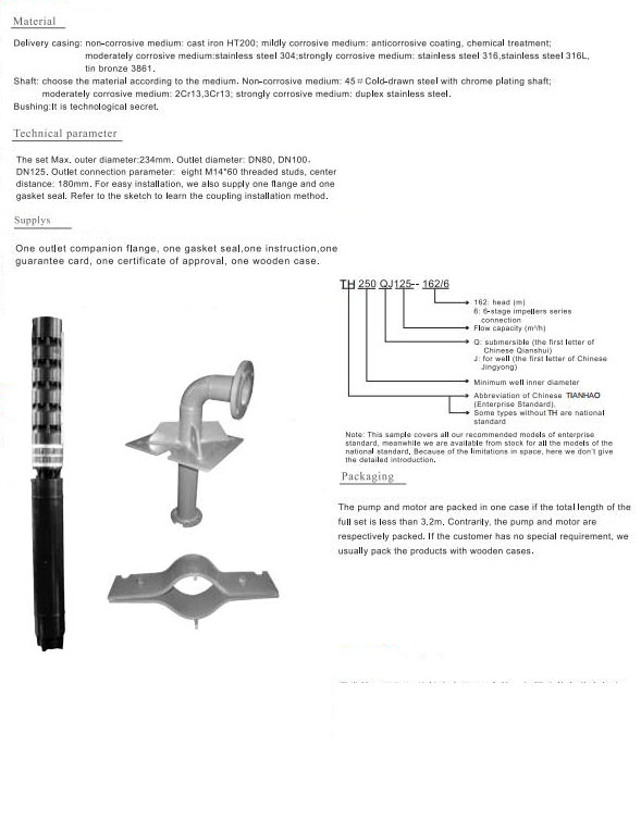 4SP, 6SP, 8SP, 10SP series stainless steel deep well submersible pump QJ series well submersible pump Features: