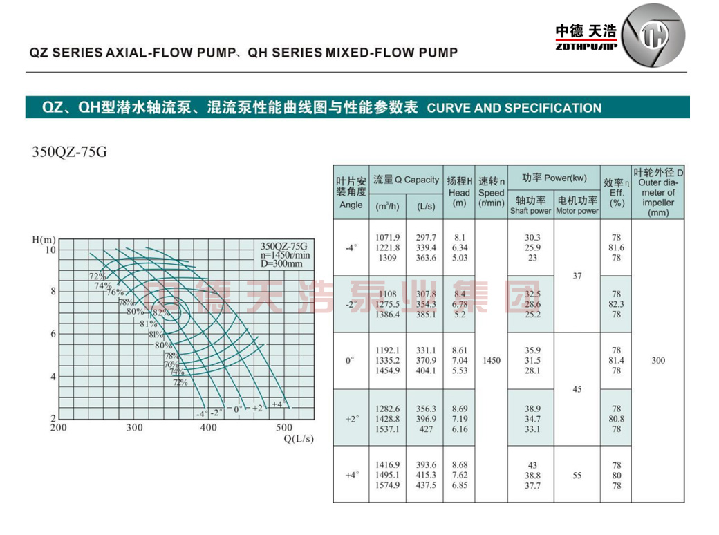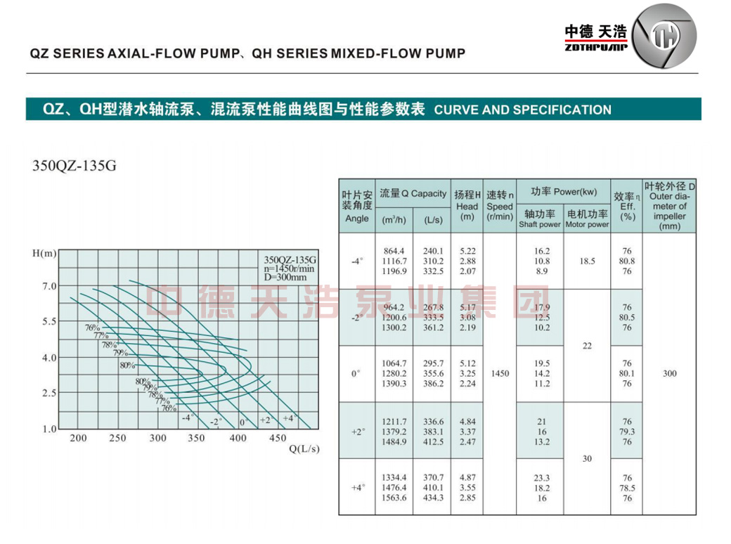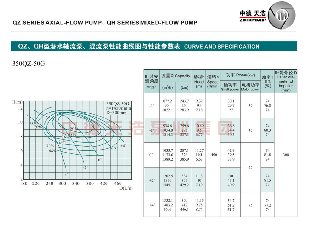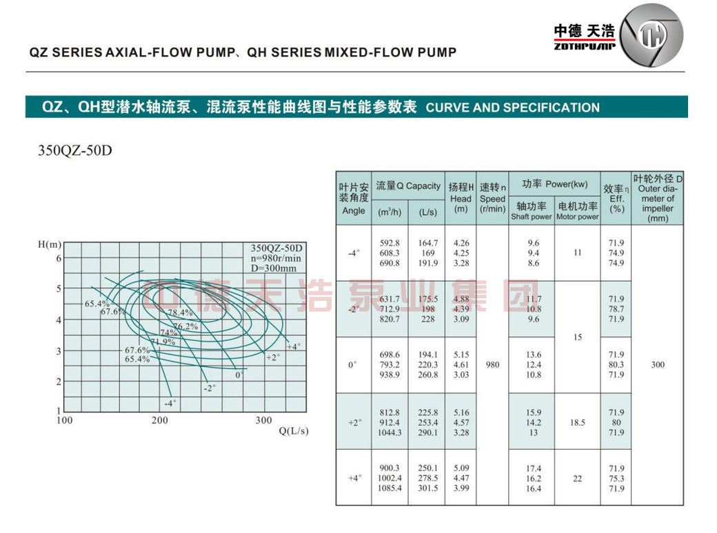 QZ、QH系列泵具有单机流量大,扬程幅度宽,效率高等特点。潜水电机与水泵体式结构, 潜入水中运行,具有传统机组无法比拟的优点: