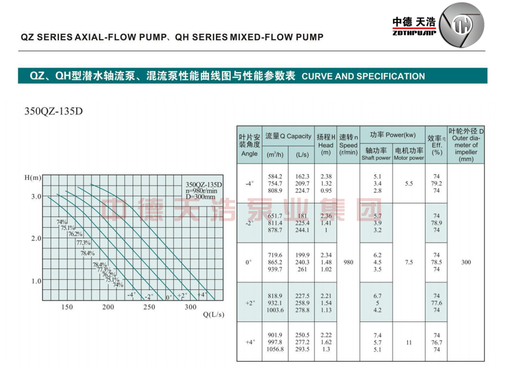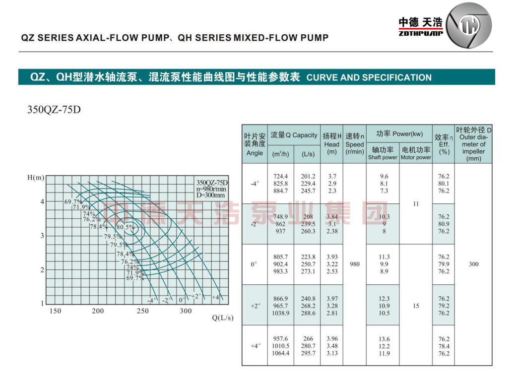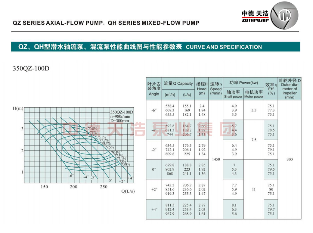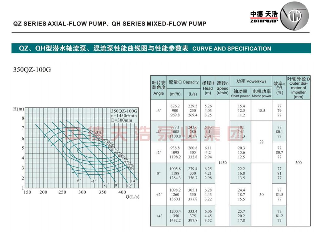QZ、QH系列泵具有单机流量大,扬程幅度宽,效率高等特点。潜水电机与水泵体式结构, 潜入水中运行,具有传统机组无法比拟的优点: