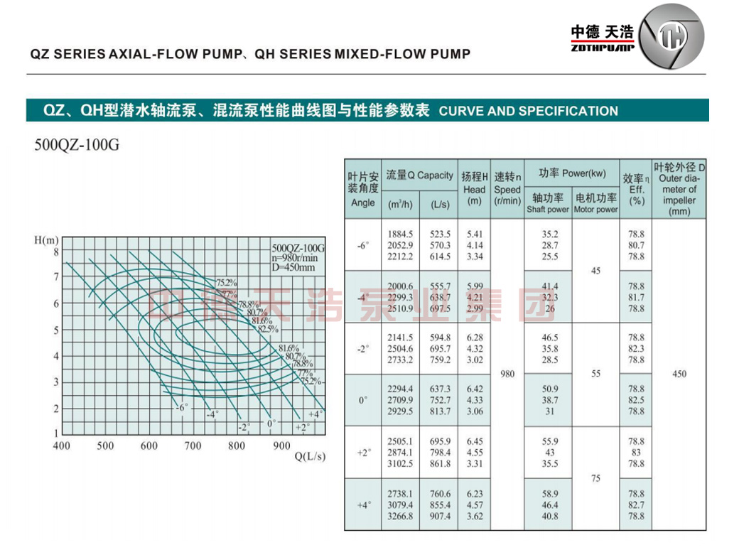 QZ系列潜水轴流泵、QH系列潜水混流泵根据用户的要求及使用条件精心设计而研制成功的新代产品。水力模型和旧模型相比流量提高,和旧模型相比流量提高20%- 30%,效率提高3%一5%,且抗汽蚀性能优良。
