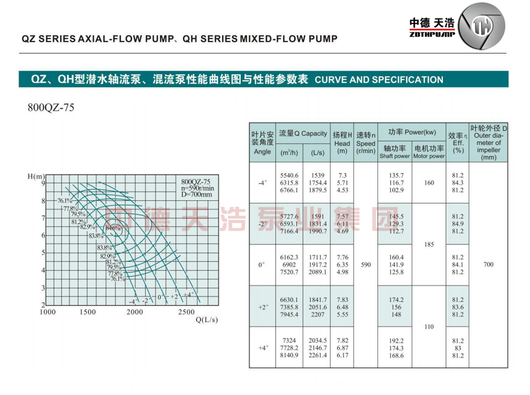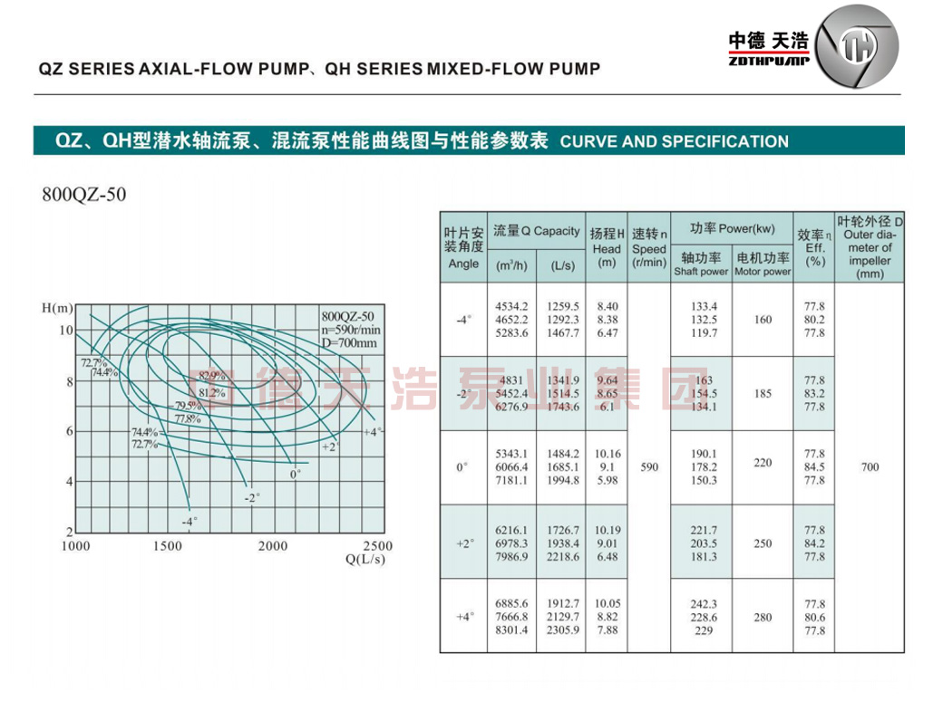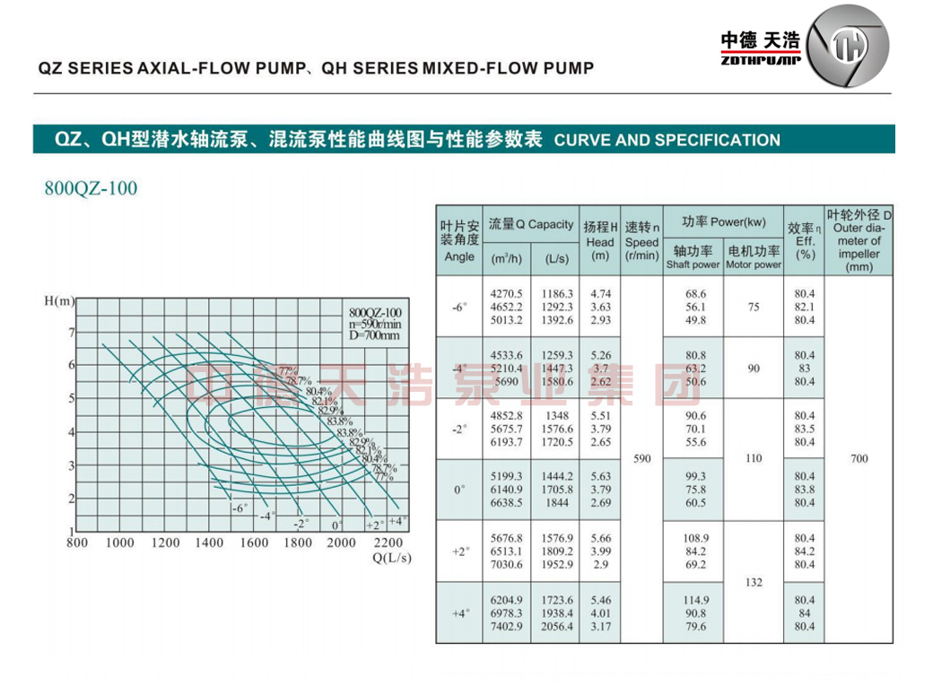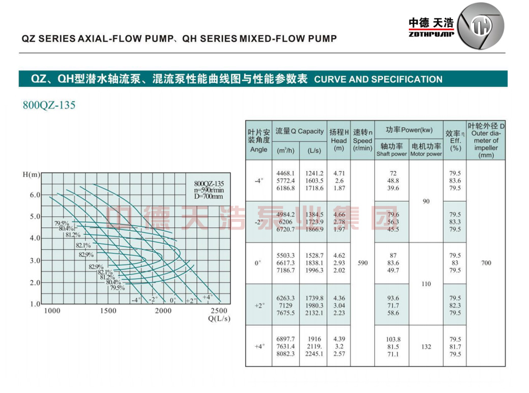 QZ、QH系列泵具有单机流量大,扬程幅度宽,效率高等特点。潜水电机与水泵体式结构, 潜入水中运行,具有传统机组无法比拟的优点: