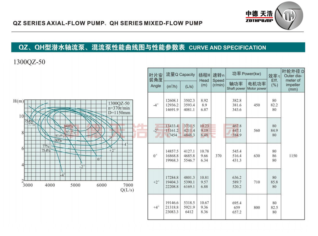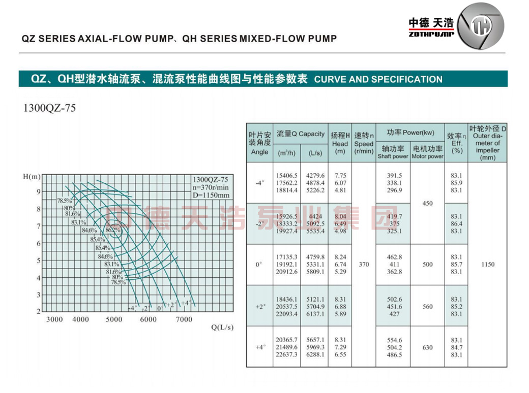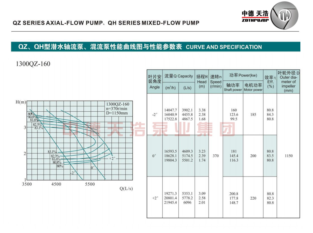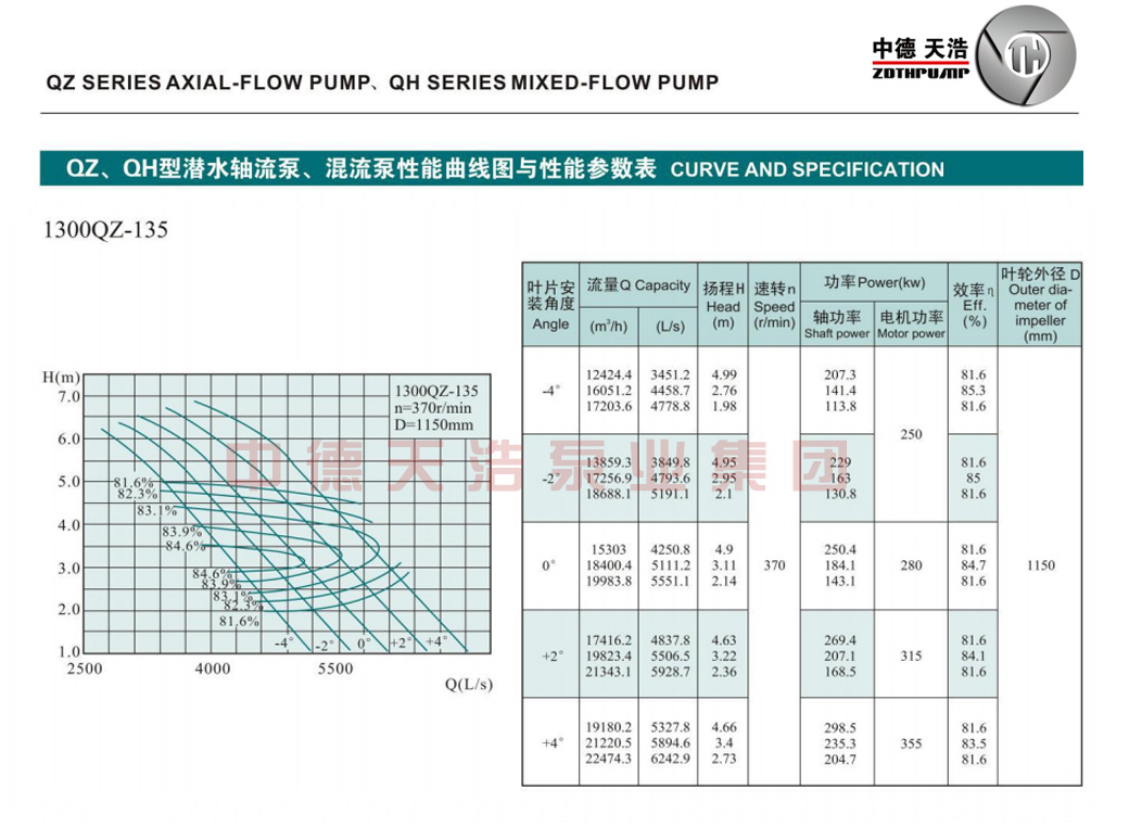 1300QZ轴流泵参数