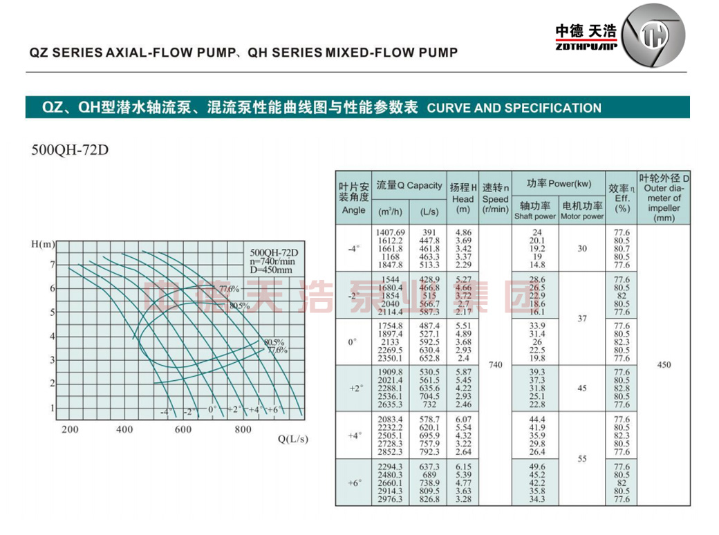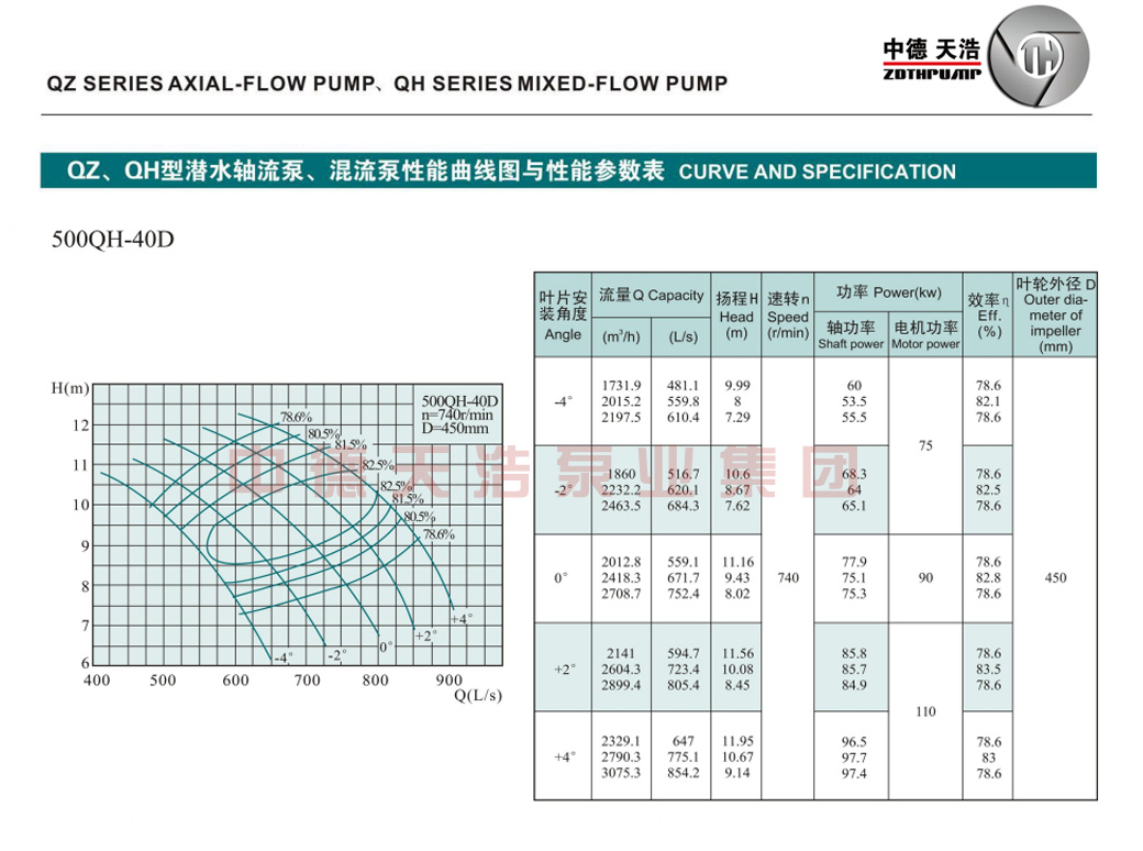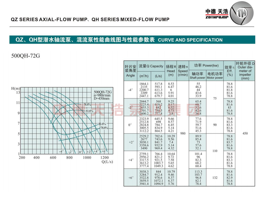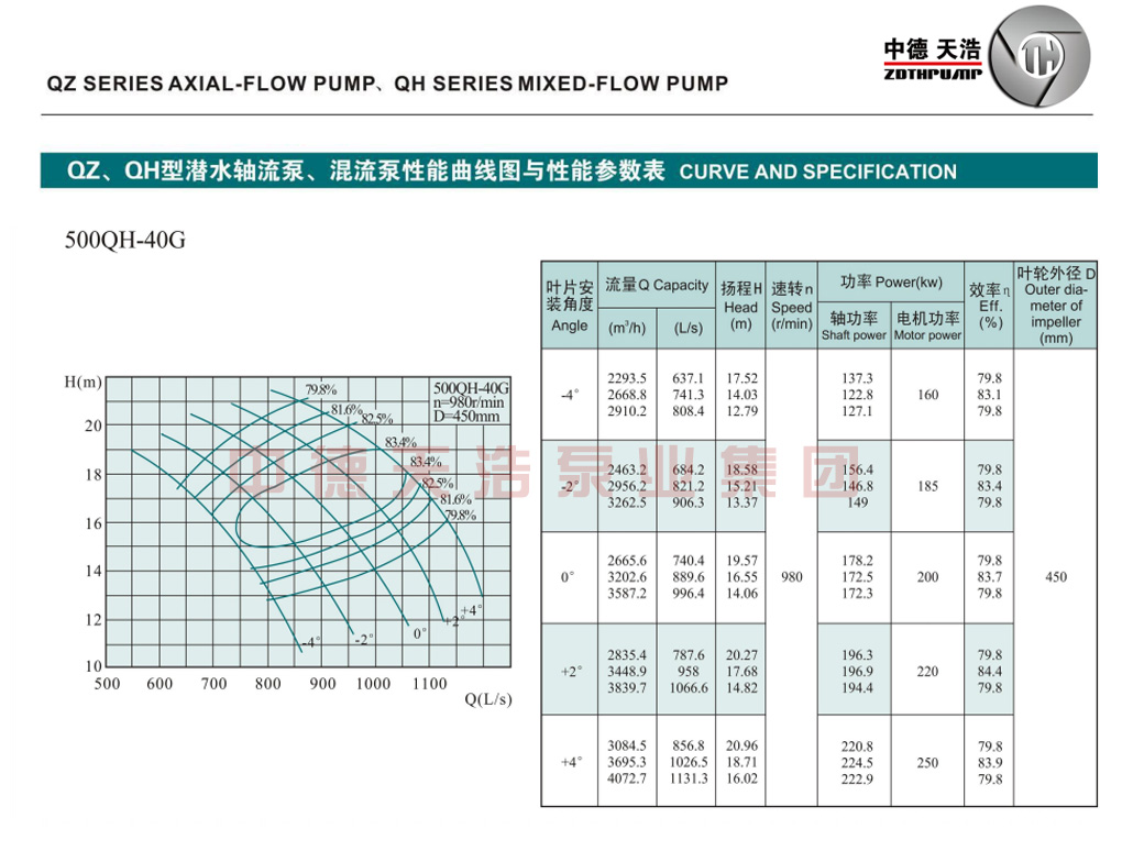 500QH混流泵参数