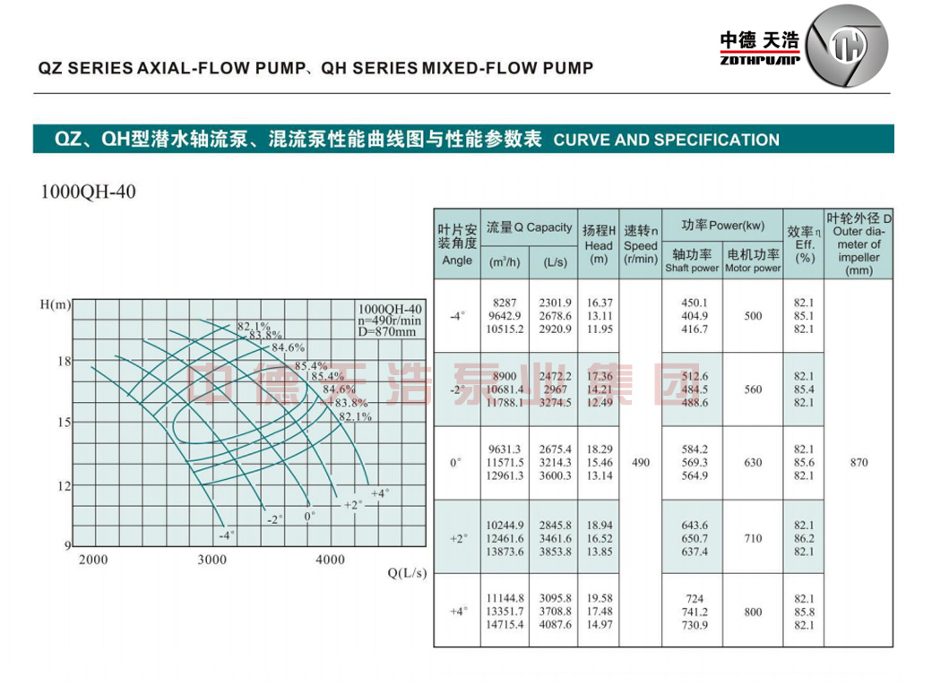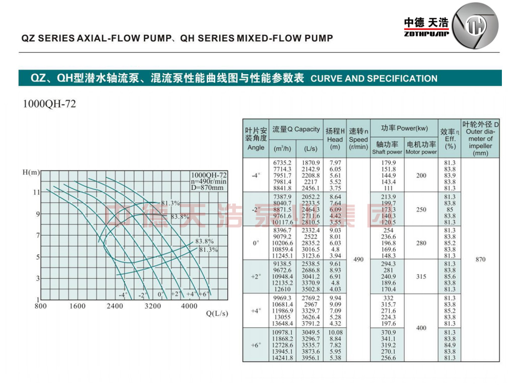 1000QH混流泵参数
