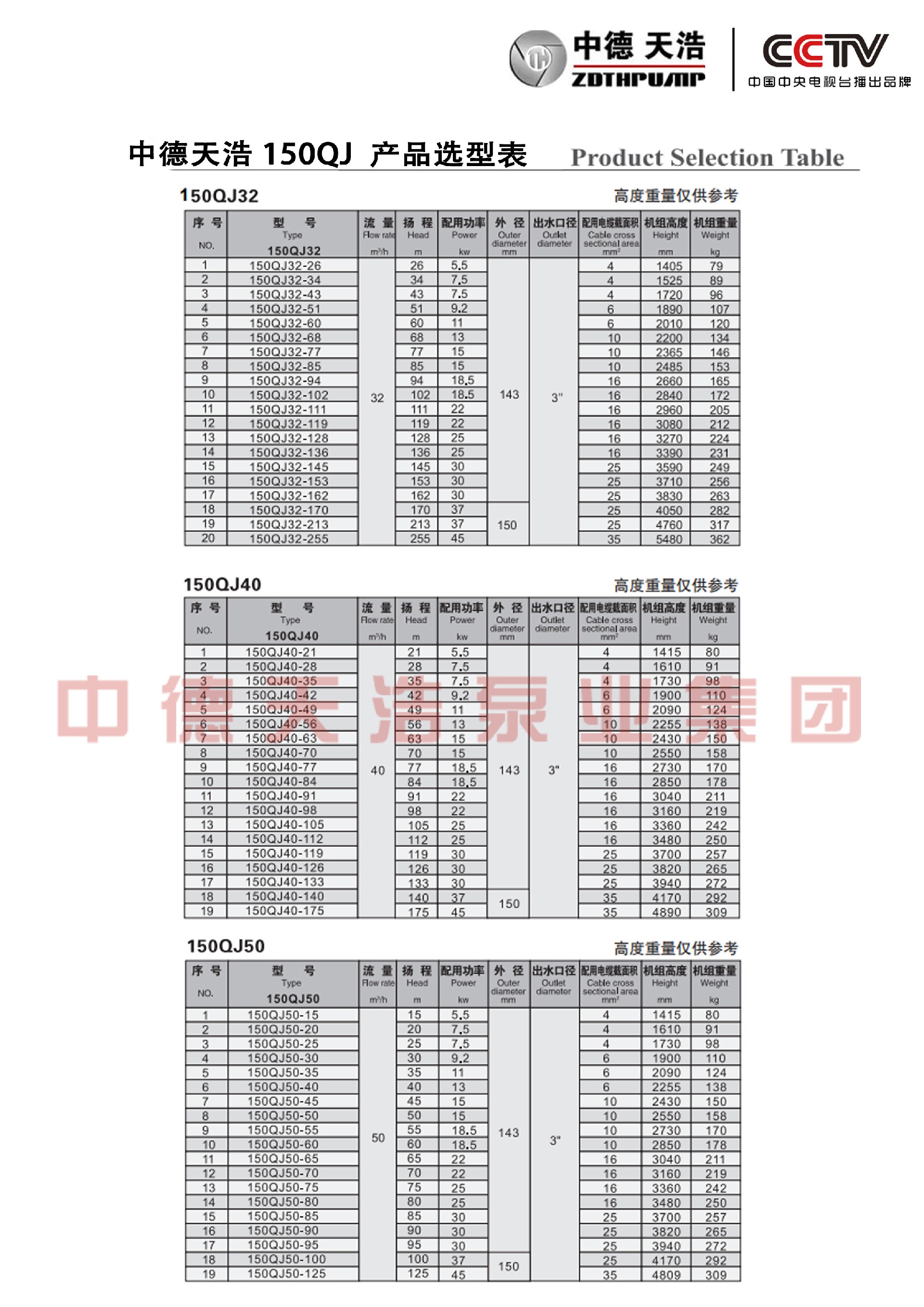 100QJ, 125QJ, 150QJ, 175QJ, 200QJ, 250QJ, 350QJ, 600QJ系列不锈钢深井潜水泵QJ系列井用潜水泵特点: