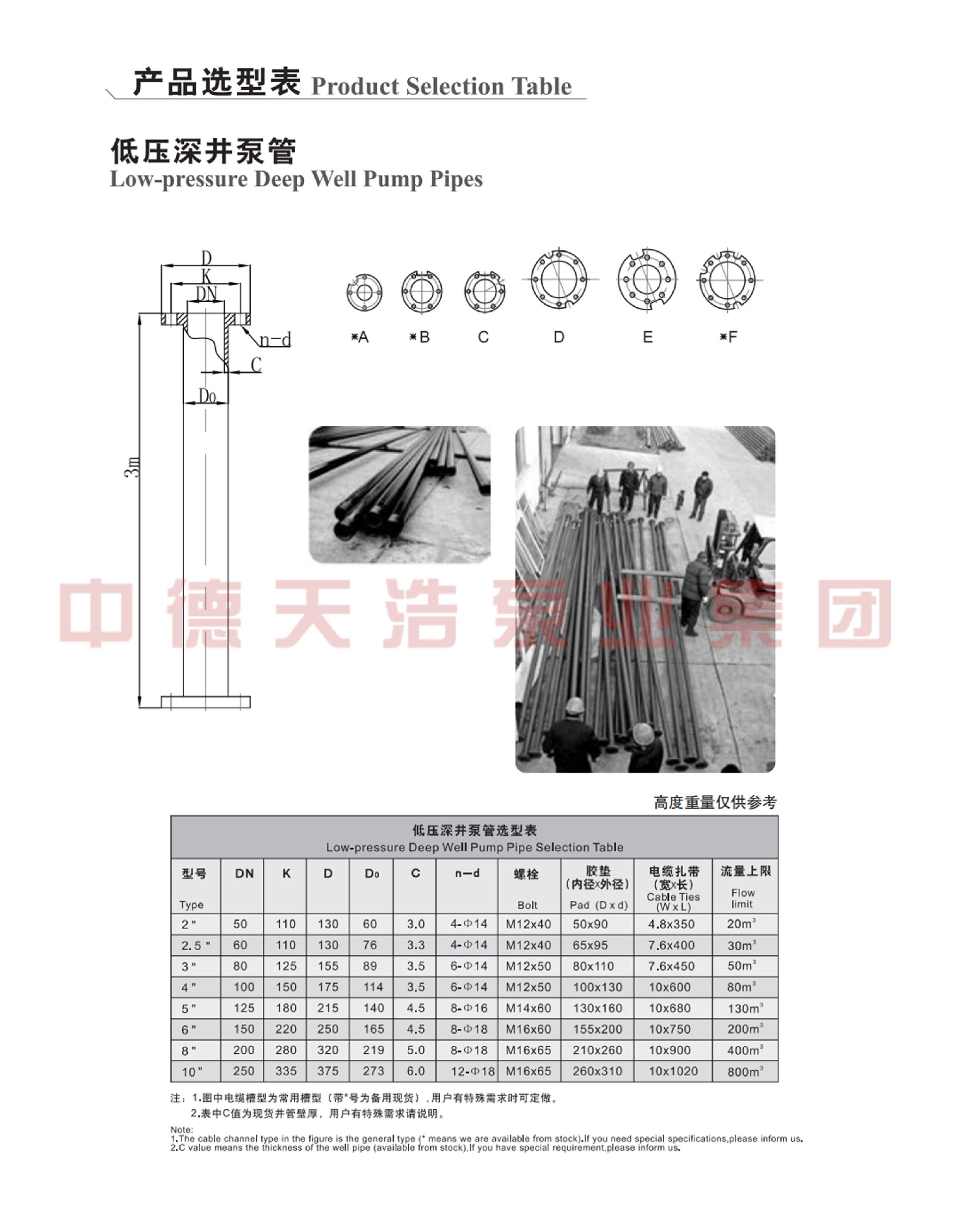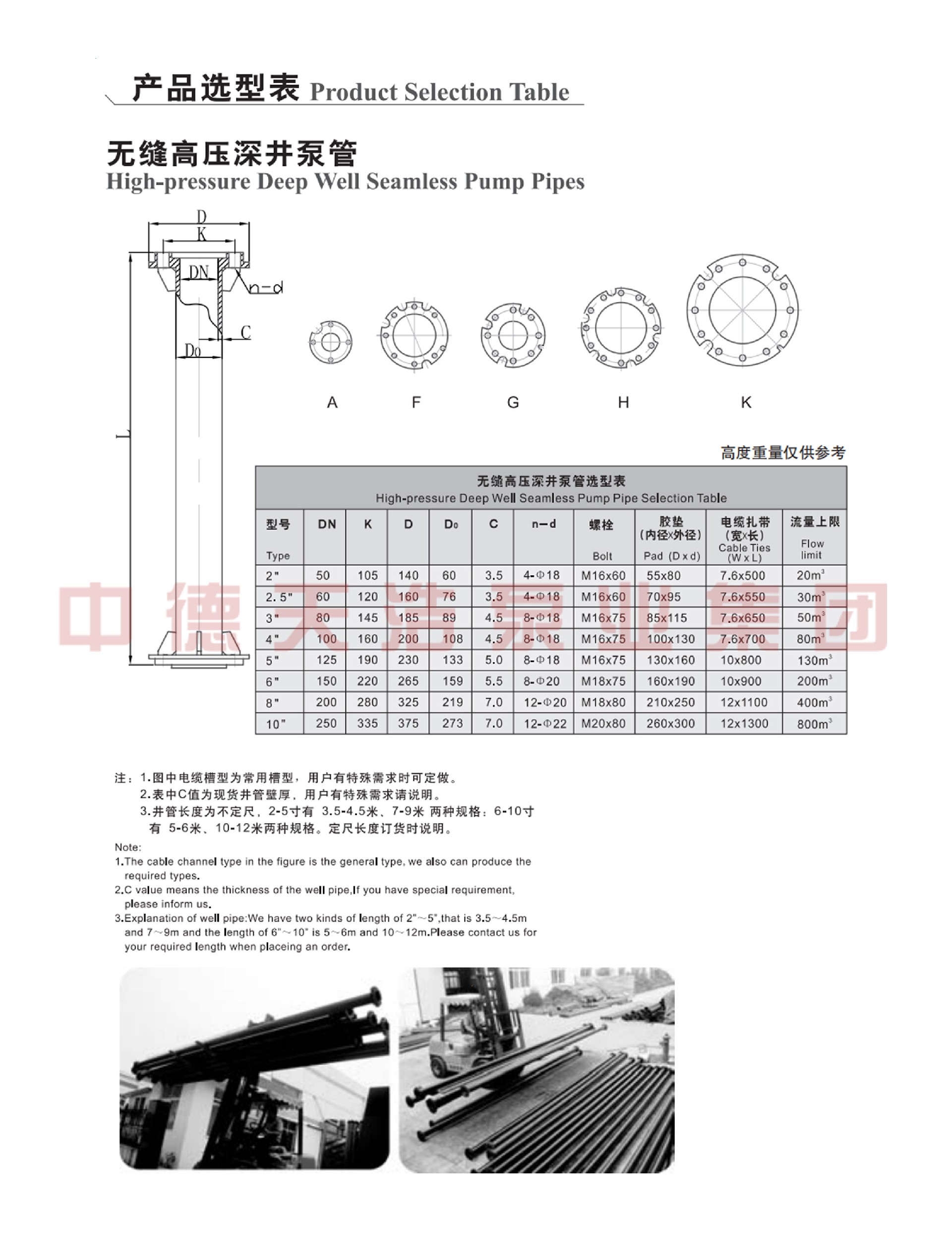 2、对井管无特殊要求,对输水管只要能承受相应压力即可。