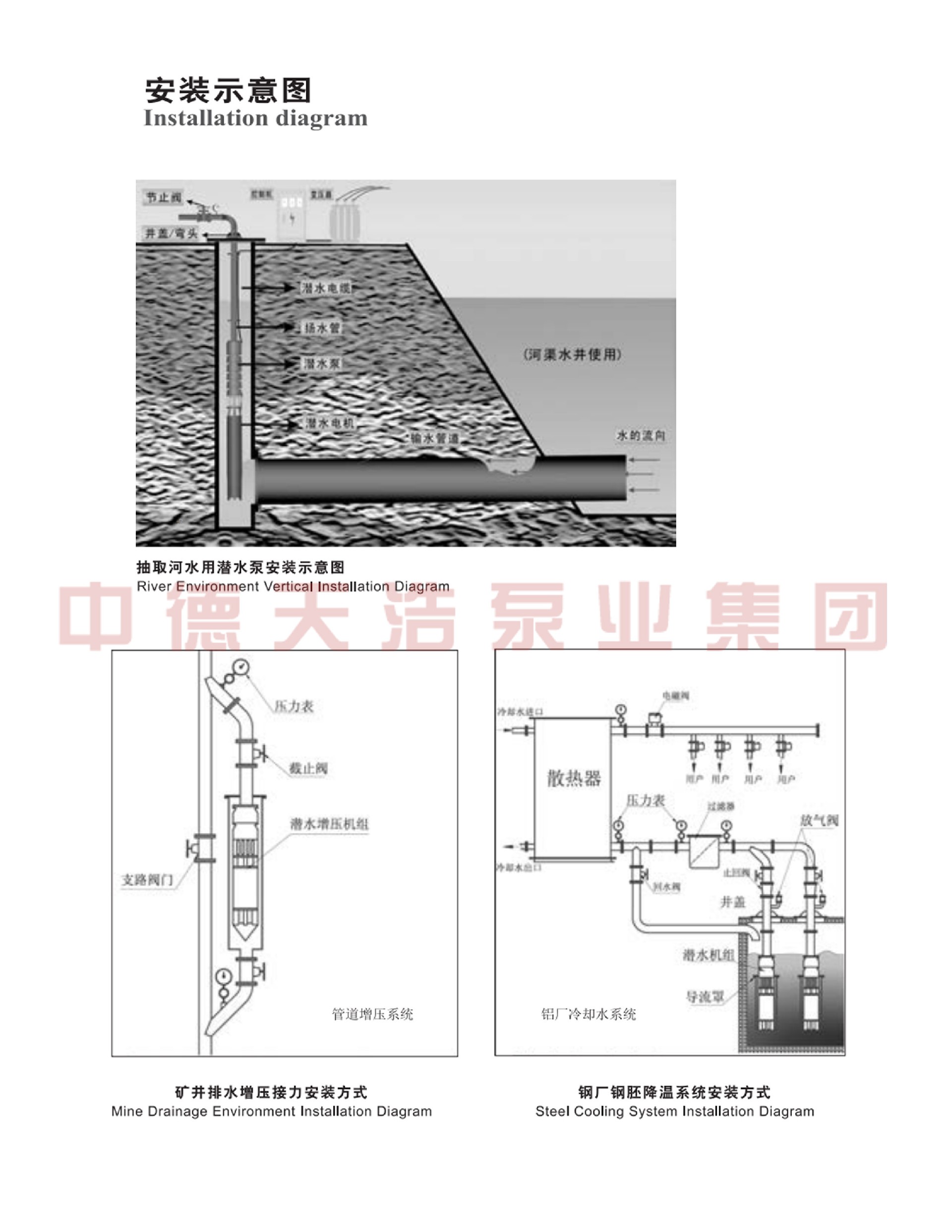 1、电机、水泵一体,潜入水中运行,安全可靠。