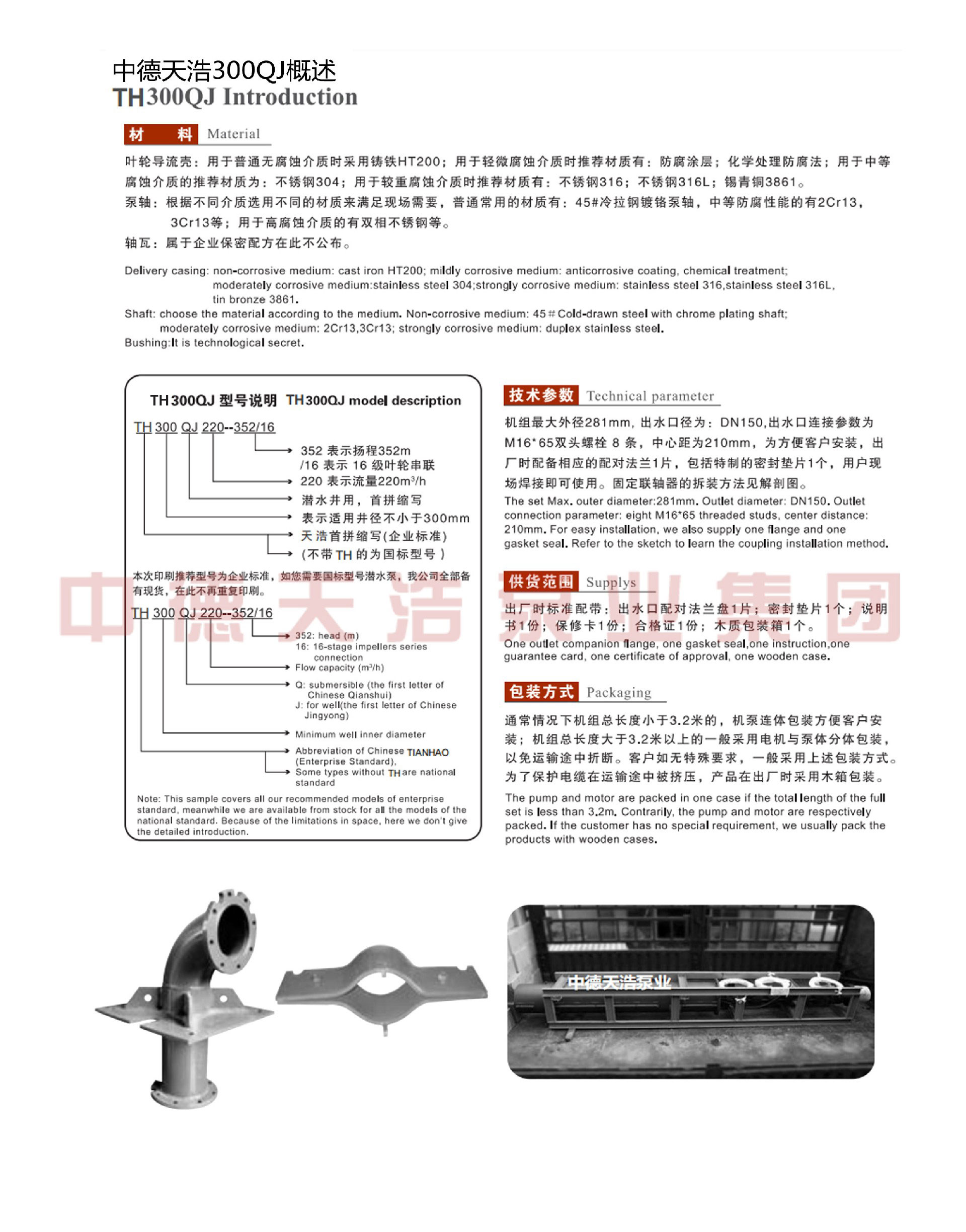 100QJ, 125QJ, 150QJ, 175QJ, 200QJ, 250QJ, 350QJ, 600QJ系列不锈钢深井潜水泵QJ系列井用潜水泵特点: