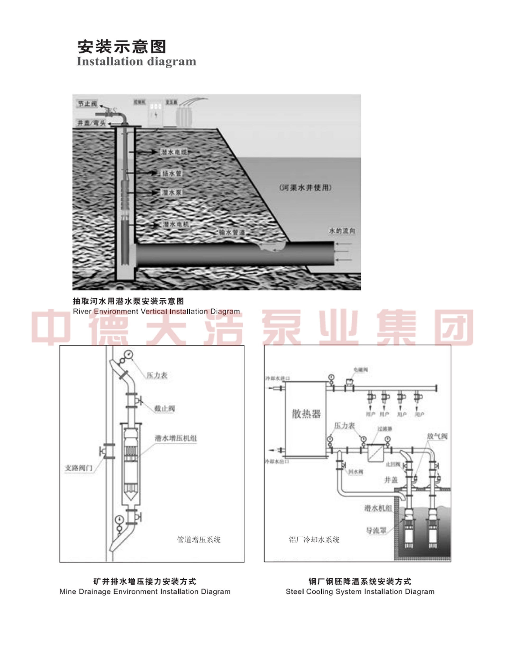 1、电机、水泵一体,潜入水中运行,安全可靠。
