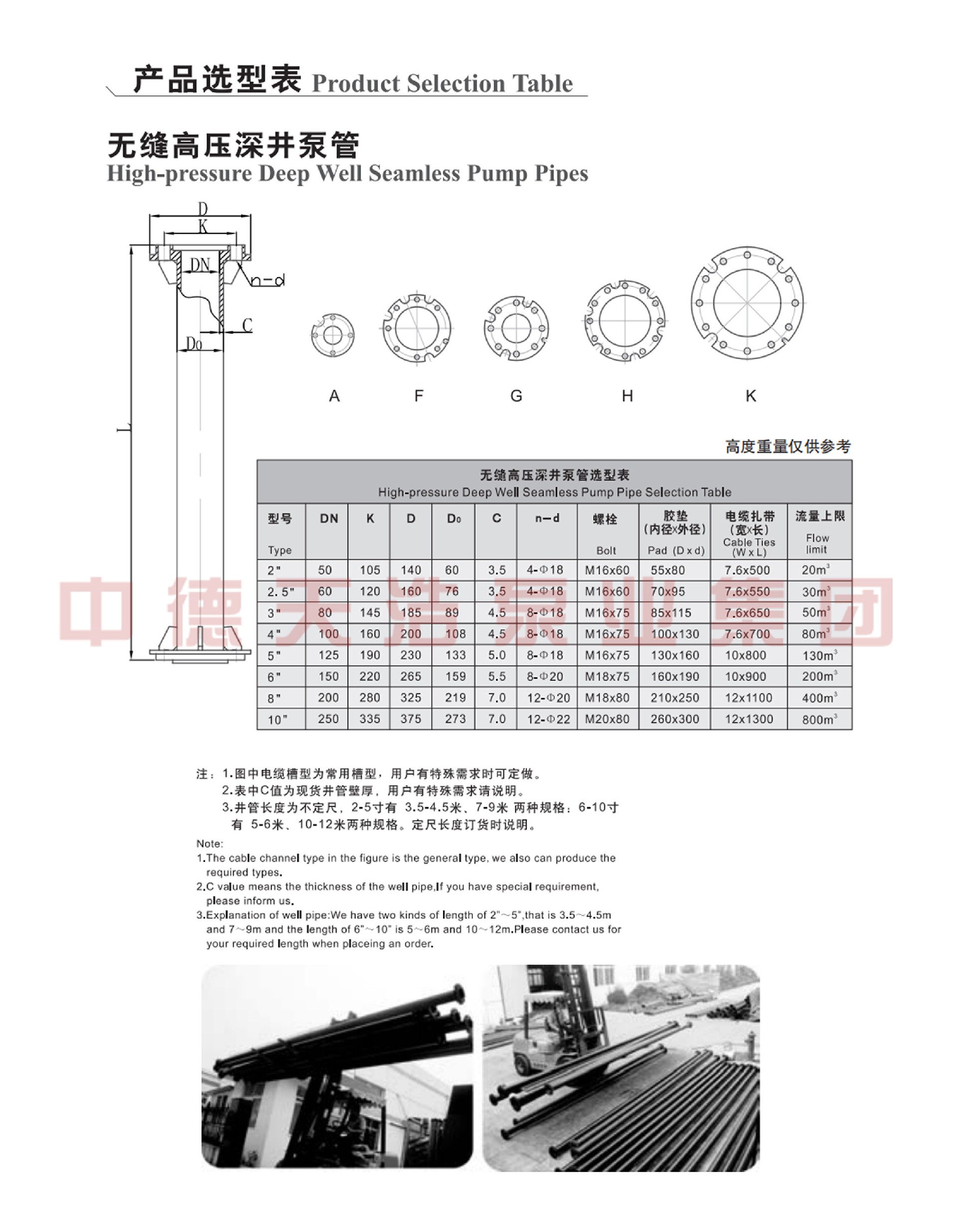 2、对井管无特殊要求,对输水管只要能承受相应压力即可。
