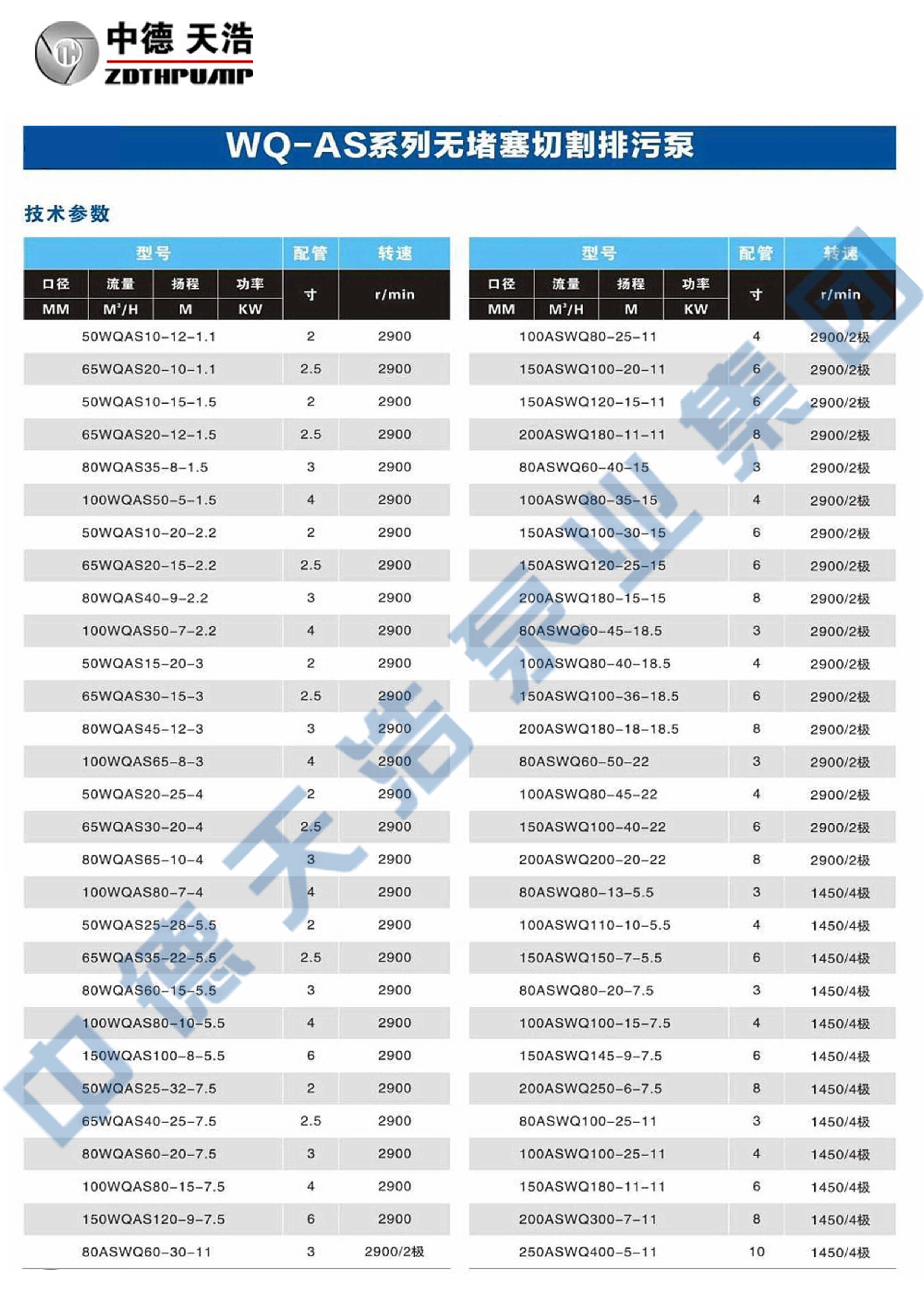 污水泵属于离心杂质泵的一种,具有多种形式:如潜水式和干式二种,常用的潜水式为QW型潜水污水泵,常见的干式污水泵如W型卧式污水泵和WL型立式污水泵二种。主要用于输送城市;污水,粪便或液体中含有纤维。纸屑等固体颗粒的介质,通常被输送介质的温度不大于80°C。由于被输送的介质中含有易缠绕或聚束的纤维物。故该种泵流道易于堵塞,泵一旦被堵塞会使泵不能正常工作,甚至烧毁电机,从而造成排污不畅。给城市生活和环保带来严重的影响。因此,抗堵性和可靠性是污水泵优劣的重要因素。
